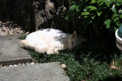 我が家の外猫、シロも、あちこちウロウロしながら付き合ってくれました。